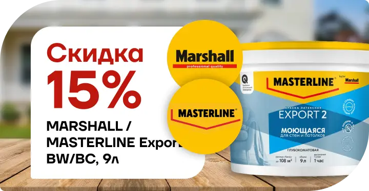 Скидка 15 % на краску Marshall / Мастерлайн ЭКСПОРТ‑2 (базы BW и BC, глубокоматовая, 9 л)